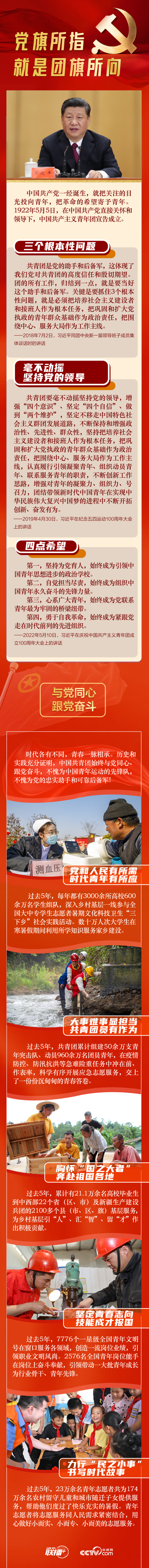 “共青团是党的助手和后备军,这体现了我们党对共青团的高度信任和殷切期望。”站在党和国家事业薪火相传的战略高度,立足党的事业后继有人这一根本大计,习近平总书记强调,要加强对青年政治引领,党旗所指就是团旗所向。